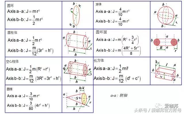 常用的转动惯量计算公式表: